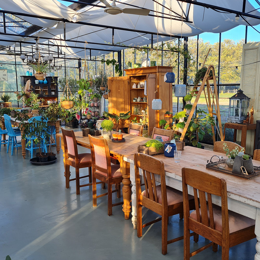 De glazen tuin is de plek om een klein cadeautje te komen halen of een te gekke kamerplant. Het assortiment is wisselend en veranderd met de seizoenen mee!